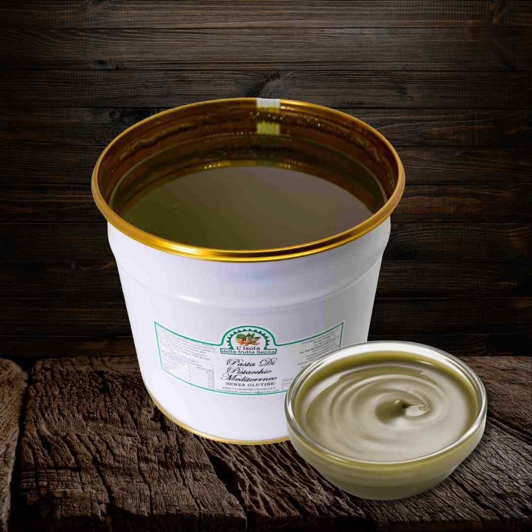 Pasta di Pistacchio Mediterraneo con clorofilla .Ideale da usare in gelateria per realizzare gustosi gelati Latta da 3,500 kg